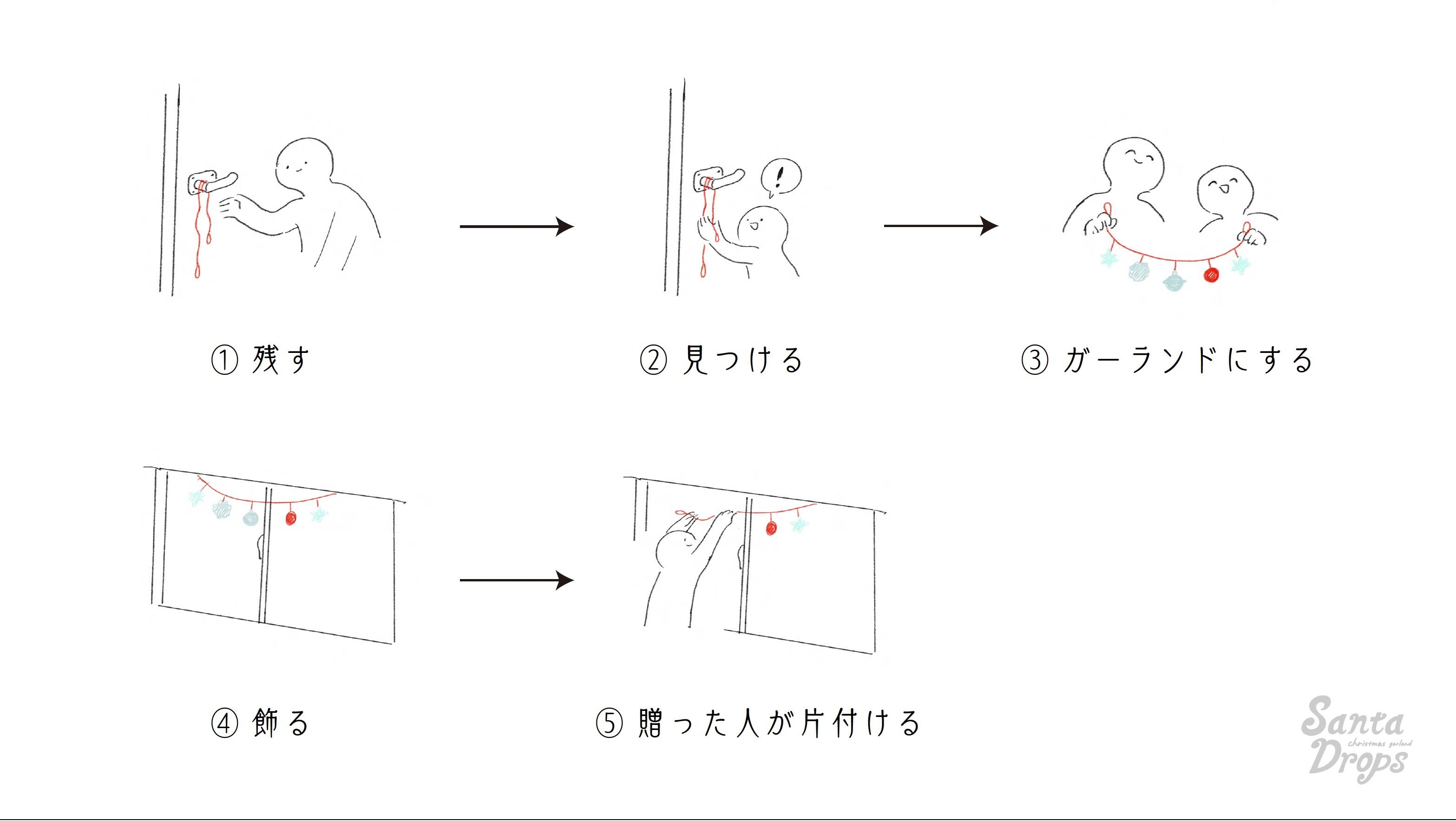 お相手に落とし物5つを集めてもらった後は、それらをガーランドにして飾って楽しんでください❣️❣️❣️